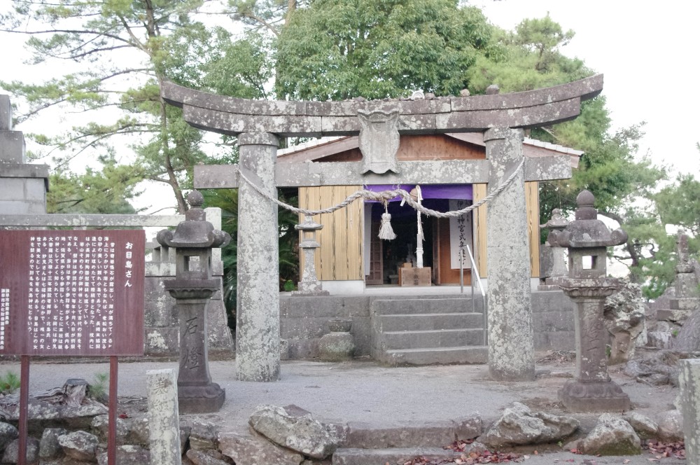 奇石が海岸に露出して出来た海沿いの小さな敷地内にる神社です。岩山そのものがご神体という古代の形そのままの祭神で、昔は眼の病気が良くなるといって参拝者が多く、神社の臼型石の神水をいただいて眼にさすと治るという評判だったそうです。